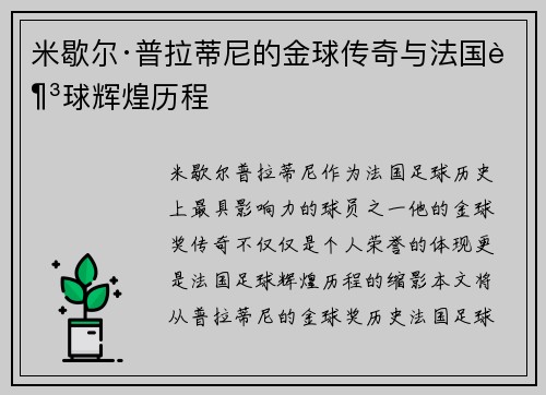 文章摘要:梅西荣膺8次金球奖与世界杯冠军,他的足球生涯成就堪称传奇。从个人荣誉到国家荣耀,梅西在足球史上留下了不可磨灭的印记。本文将从多个角度详细探讨他的成就,揭示他为何被誉为足球界的传奇。1、个人荣誉与奖项梅西的职业生涯光彩夺目,尤其是他8次金球奖的辉煌成就。从年轻的天才到成熟的领袖,梅西的每一座...